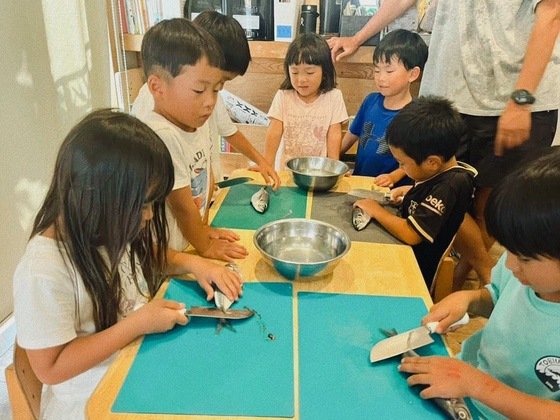 帰ったあとは、魚の下処理。みんなもう慣れたもの。