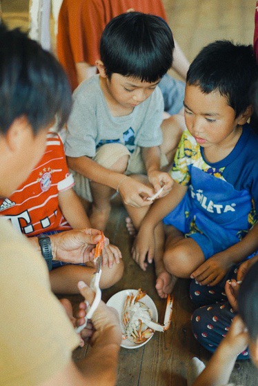身はぷりっぷりで旨みに溢れたガザミをみんなでいただき、幸せとおいしさが広がっていきます。