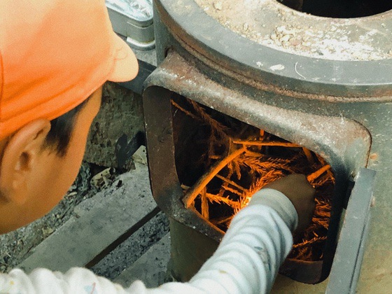 鍋を押さえる人、かき混ぜる人、声をかける人。それぞれの動きが重なって、ジュウジュウと響く音がリズムを刻む。自分たちで全てをつくる料理の時間そのものが、ごちそうです。