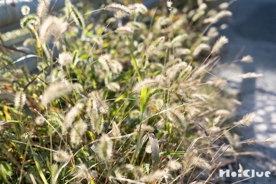 小さな穂のねこじゃらしが沢山生えています。ふわふわでかわいいので、少し摘んで宝物に加えます。