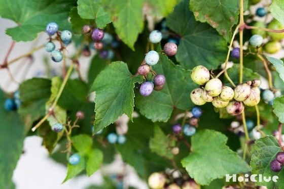 ノブドウがちょうど鮮やかに色づいていました。持ち主のおじさんに声をかけたところ「持っていっていいよ!」と言っていただけたので、宝物用に少しいただいていきます。
