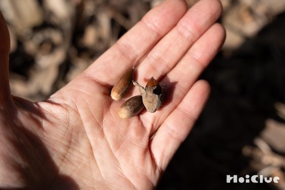 どんぐりが落ちているのを発見!拾っていきます。沢山宝物が集まりました。