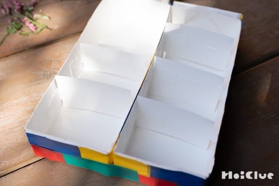 画用紙で中に仕切りを作れば、まるでコレクションボックスのよう。 どんな色にしようかな、どんなふうに並べようかな、工夫する時間も楽しみのひとつ。