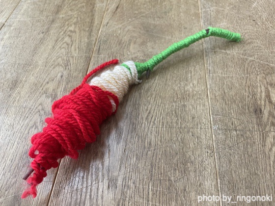 細身の枝にぐるぐる巻きつけていたUちゃんは「りんご!」