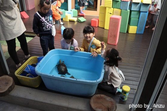 うさぎ、カメ、金魚、ヤギ・・・。あんず幼稚園にはたくさんの動物がいます。