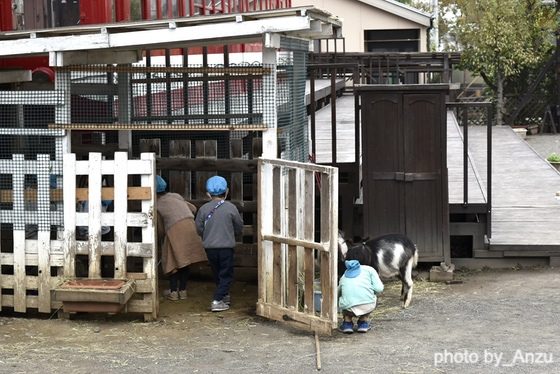 ヤギたちに愛着が湧く様子も見られ、あんず史上初めてヤギごっこをする子も現れたほどでした。元気な双子の子ヤギに翻弄されながらも一生懸命世話をする年長の子どもたちです。