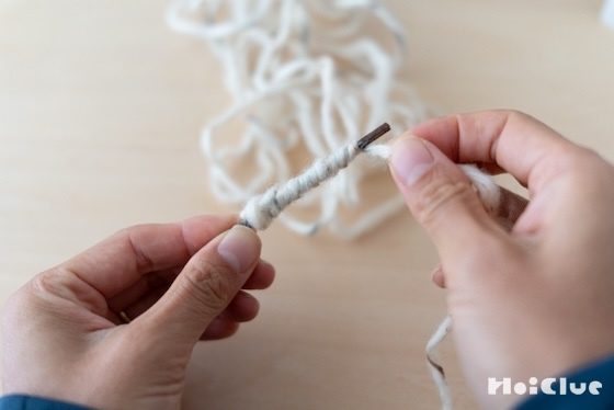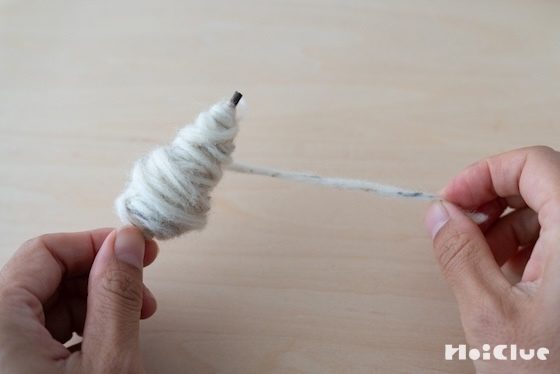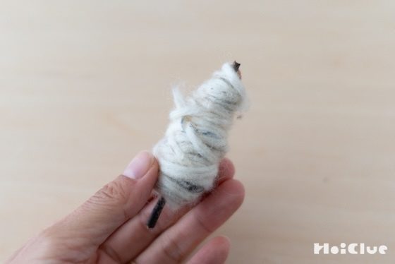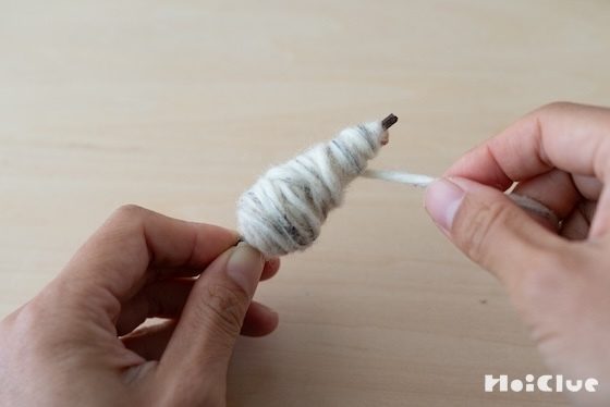 7. 毛糸の余りが10cmほどになったら、巻き付けるのをストップします。
