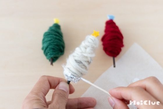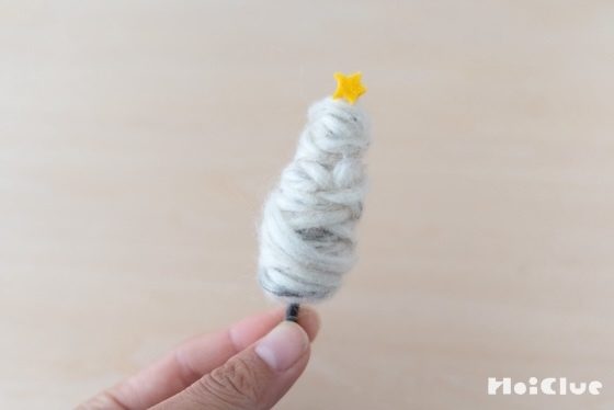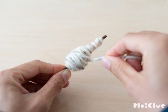 6. 細いところと太いところに差ができるので、全体の太さがツリーのように、なだらかになるよう毛糸を巻き付けていきます。