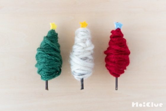 10. 赤や緑の毛糸でも、ツリーを作ってみました。