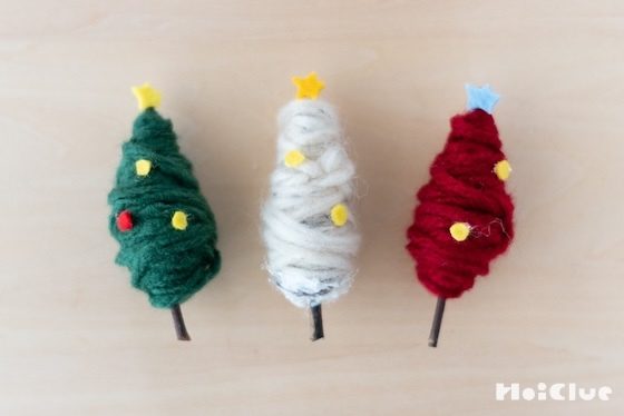 木の枝と毛糸で作る、小さなぐるぐるツリー〜素材/毛糸〜