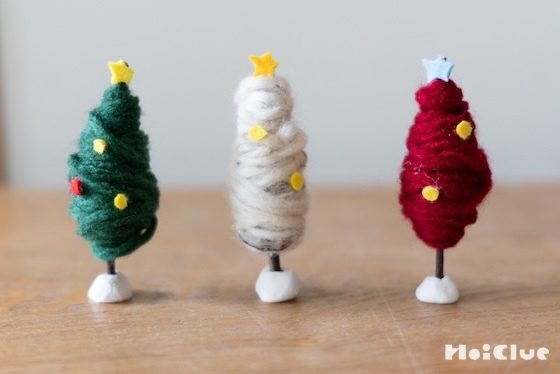13. 紙粘土で作った土台に刺せば、本物のツリーのように立てて飾ることができます。紐をつければオーナメントとして、大きなツリーに飾ることもできますよ。