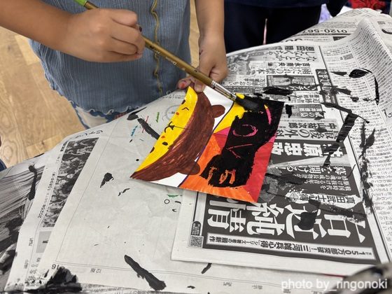 秘密の手紙、夜のお家、蜘蛛の巣に浮かぶ蝶々。子どもたちは黒く塗りながら、場面の変化と共にある『ものがたり』をたくさん聴かせてくれました。それはろうそくの秘密の絵みたいです。作品に隠れた透明なストーリー。たくさん見て聴けて、幸せな時間でした。