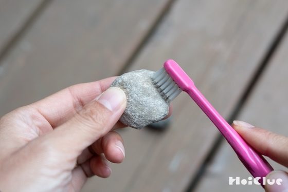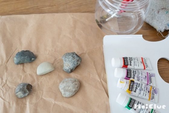 3. 小石の表面がきれいになったら、絵の具を用意して、ペイントスタート!