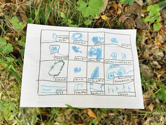 ところが、「昨日作ったネイチャービンゴ、みんなに紹介するよ!」という一言で空気が変わります。さっきまで知らん顔だった子どもたちが、待っていましたと言わんばかりに駆け寄ってきて、おおとまが説明するより先に話し始めたのです。