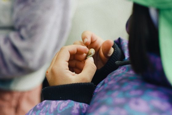 拾い上げた瞬間の表情は、小さな達成そのもの。