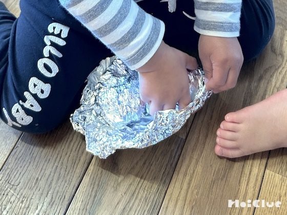 ひとしきり遊び終わると、今度は一枚一枚アルミホイルを剥がして、分解してみる。