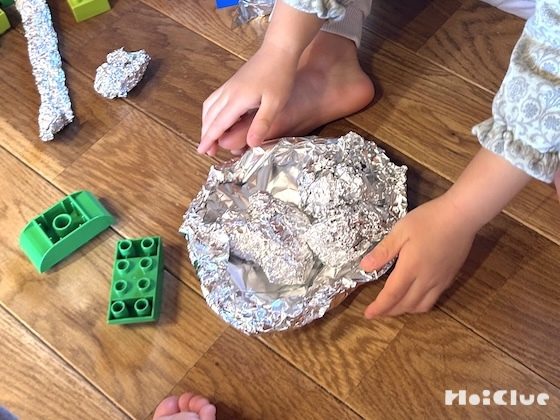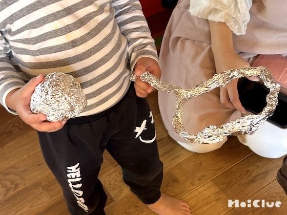 アルミホイルを丸めたり、ねじったりして、それぞれの「面白い」を楽しもう!