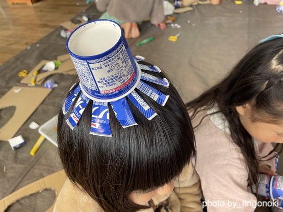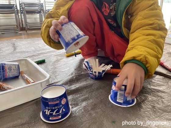 ヨーグルトカップからいろんなものが見えてきた子どもたち。