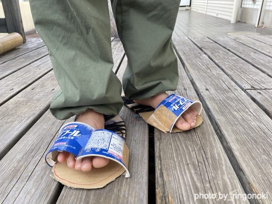 そして、「ちょっと大きくなっちゃった」出来上がったスリッパは自慢の逸品!