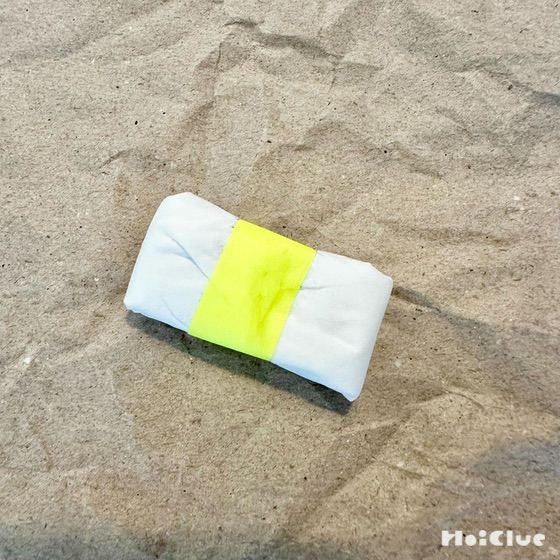 8、さいごに、輪ゴムをつけたらできあがり!いろんな色で作ってみよう。