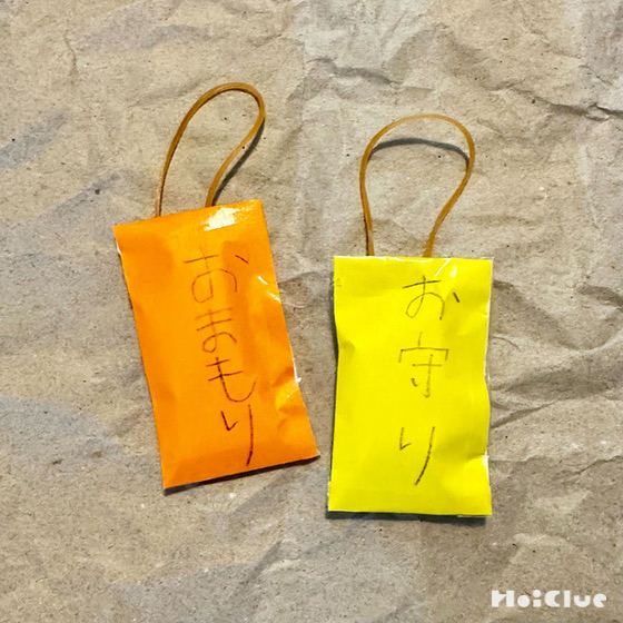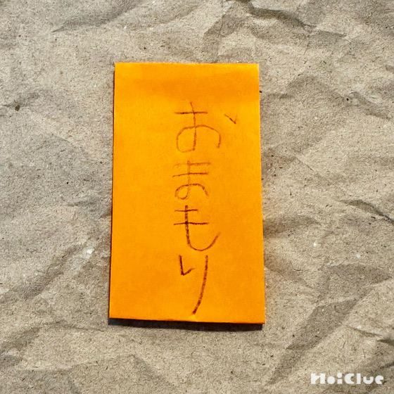 5、ひっくり返して、たてにして、「おまもり」と書きます。難しかったら、大人に書いてもらうといいです。