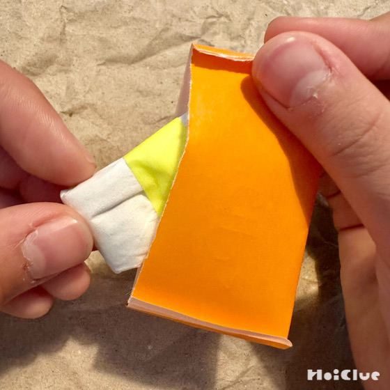 7、折り紙が開かないように、セロハンテープでとめます。その時に、心のなかで願いごとを唱えます。