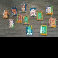 1. いろいろな大きさのダンボールの額縁を用意する。
