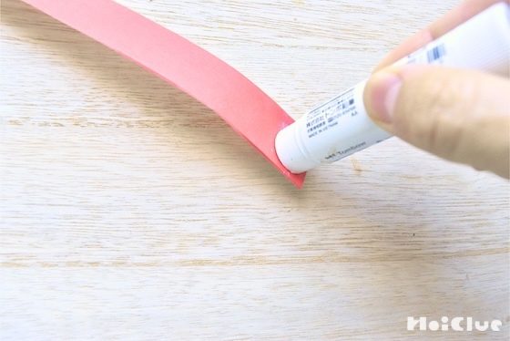 4. のりを塗ったところに反対側の端を貼る。のりでもセロハンテープでも、子どもたちが扱いやすいものを使う。