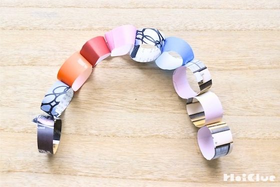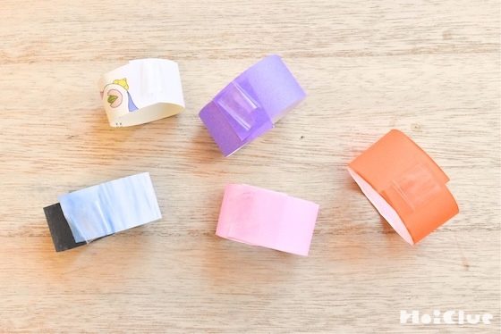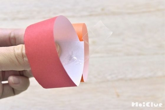 5. できた輪と輪をテープやのりでつなぐ。