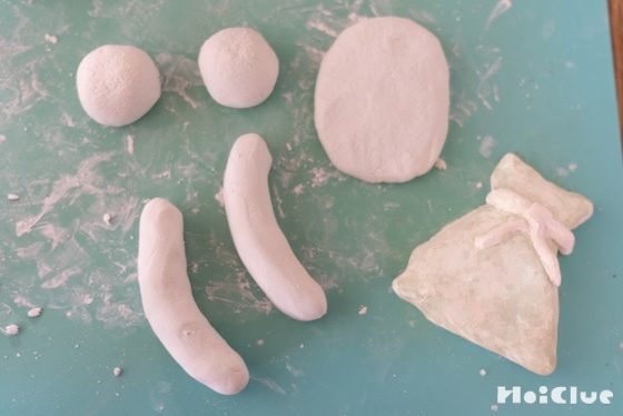 まず、大根とたまごの形を作りました。たまごは積みやすいように、少し平らにしてあります。