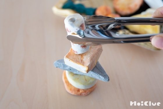 次はちくわを積みたいですが、縦にするとグラグラで倒れそう…