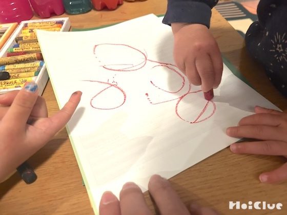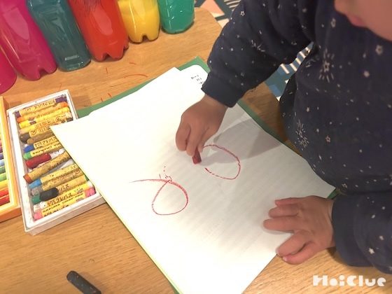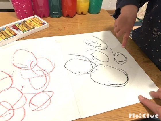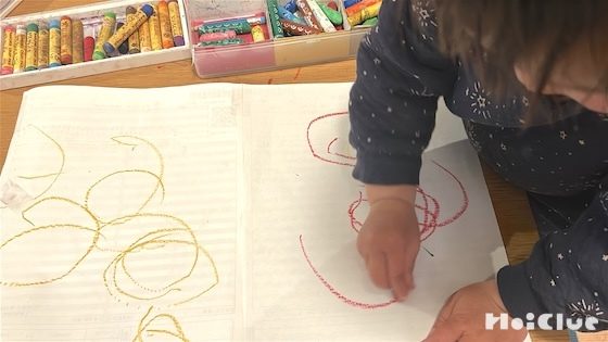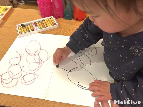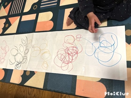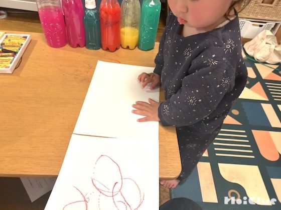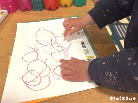 その様子をみながら「何か、イメージがあるのかな?」「いつまで描くのかな?」と想像しながら観察します。