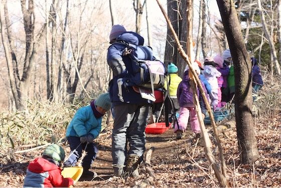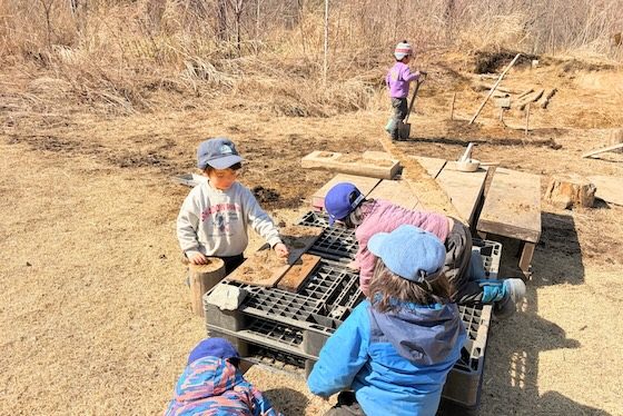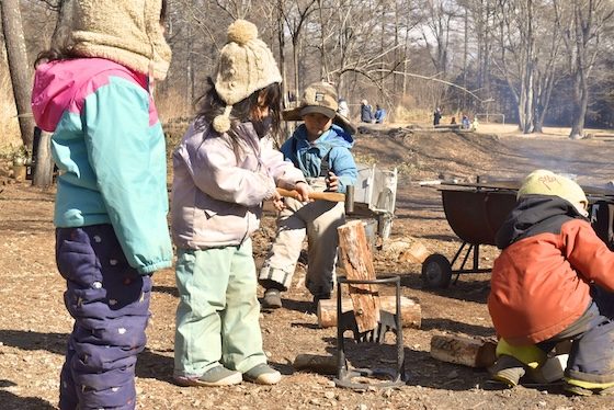 「子どもがつくる」というのは、子どもたち自身が時間の流れを握っているということだけでなく、環境づくりもそうです。例えば、春には森の中で自分たちで移動して遊べる範囲と、ここから先は大人と入るよというエリアの境界線を子どもたちと相談してつくります。