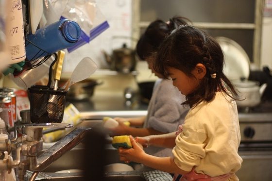 自分たちのレストランだから、後片付けも自分たちで。