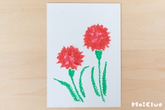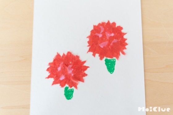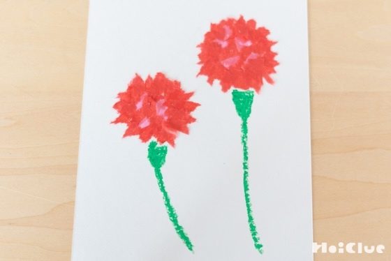 「おかあさん、ありがとう」のメッセージを書いたり、お母さんの似顔絵にこのカーネーションを添えるのも、おすすめです。