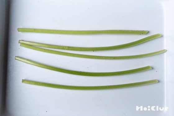 12. 今度は茎の片側だけを、4つに割いてみました。 このように細かくカットするときは、はさみがあると便利です。