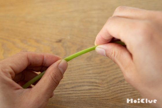 5. きれいに押しつぶせたら、茎を縦半分に割くことができます。
