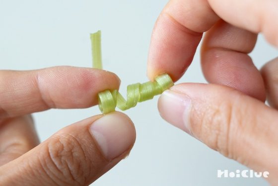 10. バネのようになっているか、実験してみましょう。 クルクルの端と端を指でつまみ、引っ張ってみます。